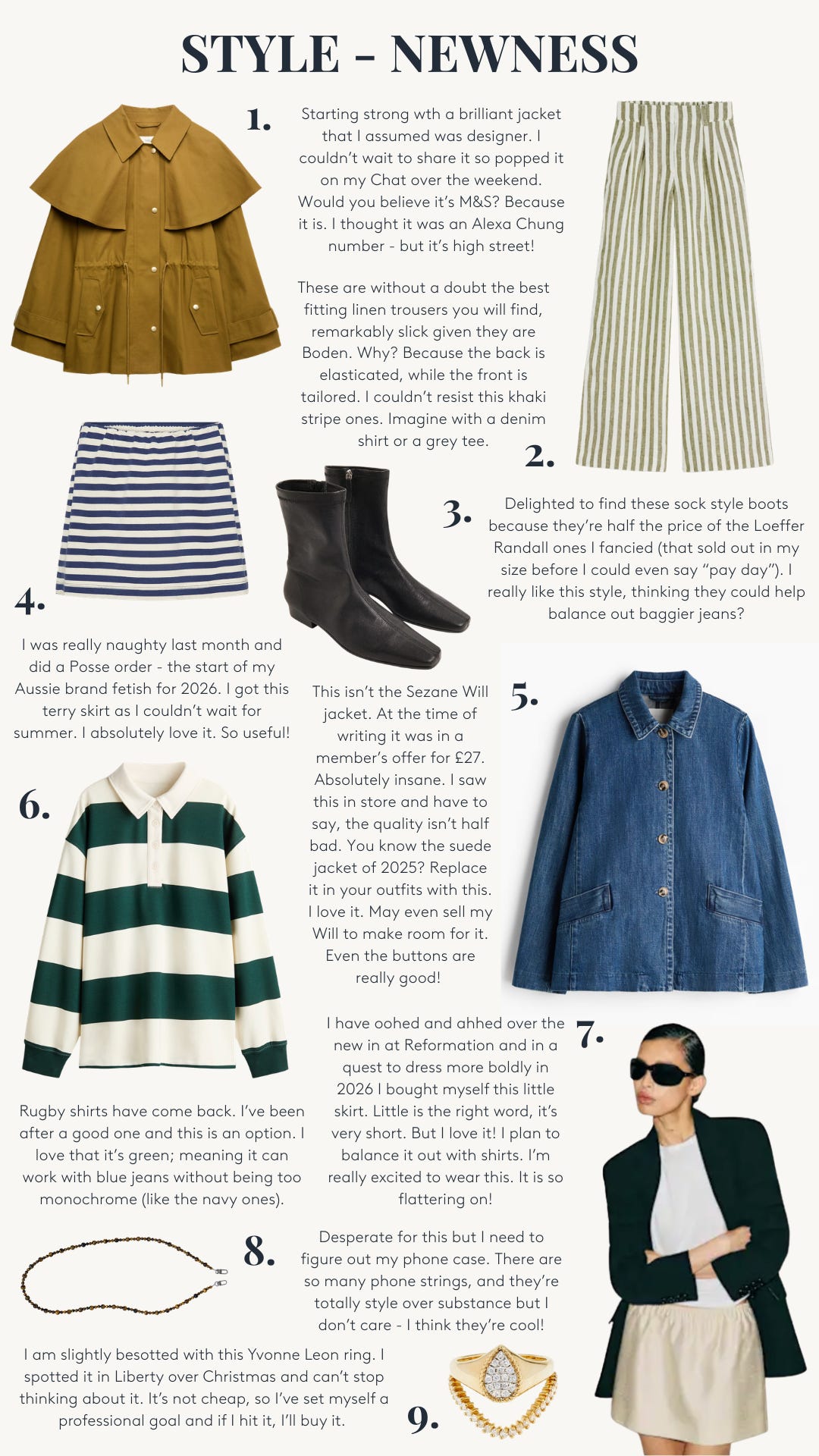 Great selections as ever! I really want to go and try on all the Frankie Shop blazers. Also - M&S have an incredible dupe for the chisel toe ankle boots. I bought them a couple of weeks ago and wearing them to death. Great with jeans, wide legs, barrels, everything, and buttery soft leather: https://www.marksandspencer.com/leather-chisel-toe-ankle-boots/p/clp60773156?intid=mobile_app_pdp_share